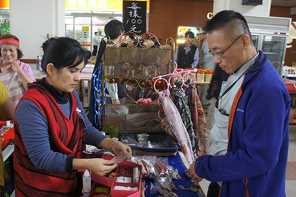 座落於桃園大溪的「泰雅伊娜工坊」是由花蓮太魯閣族的梁秀娟所成立,多年來為推廣原住民文化,她集結了社區原住民媽媽一同製作原民商品,並於各地開設原住民DIY課程傳承原味,原名為「豆豆.布魯」的梁秀娟更以國外行銷芭比娃娃為借鏡,研發製作屬於台灣本土的原住民娃娃,陸續完成阿美族等第十二套的原住民娃娃,為行銷台灣默默努力。而在為期兩天的「快樂市集」活動中,「泰雅伊娜工坊」也搬出壓箱寶,精心準備了泰雅族、阿美族、魯凱族等12族特色商品及DIY課程與同仁互動,手工精細且具有原民風味的特色商品更深獲同仁喜歡,成為「快樂市集」中最熱銷的攤位之一。