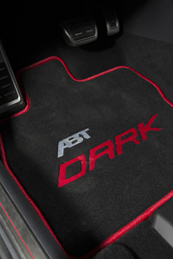 ABT Golf VII GTI Dark Edition的內裝保留Golf VII GTI原有的風格,但以特殊的「ABT Dark」紅色滾邊腳踏墊稍事妝點。