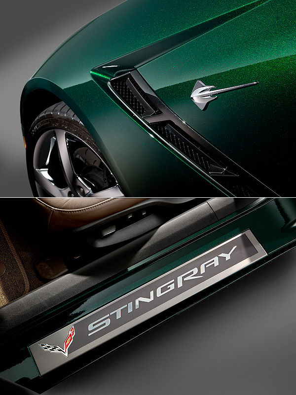 採Lime Rock車色的車身上搭配有魔鬼魚的徽飾與嵌有Stingray字樣的門檻踏板。