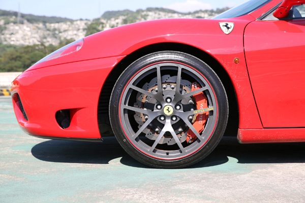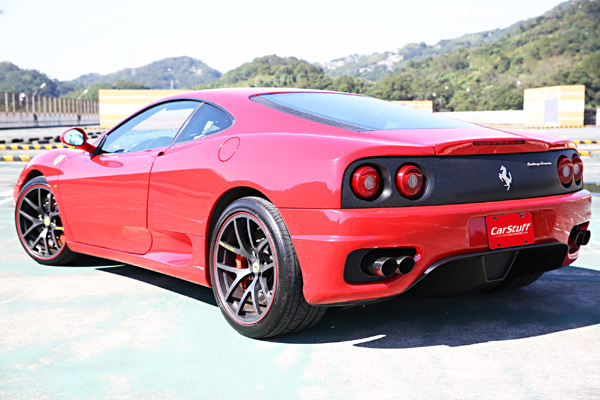 這輛在8500rpm可輸出400匹馬力的F360 Modena F1,原廠配備的圈胎規格為前:18 x 7.5J 後: 18 x 10.0J鋁圈以及搭配前215/45ZR 18 後275/40ZR 18輪胎,一般道路行駛時就已經慘叫不斷,由於車主想下屏東大鵬灣賽車場參加超跑獨走賽事,而車主據之前使用原廠Porsche 997 4S下場的經驗,想要在大鵬灣跑上10多圈,煞車與輪胎提升真的為首要改裝項目。故車主除了將煞車改為前12後6活塞外,更向德國F.MATCH亞洲代理商買了GTO鍛造系列前19x9.0J後19x11.0J鋁圈,搭配TOYO R888 前235/35R19後295/30R19熱溶胎,以應付PIC大鵬灣賽道。F.MATCH這組GTO forged系列的ET值(offset),針對Ferrari F360與430無需再使用鋁圈墊片就切齊葉子版,由於是專車專用,故連原廠中心孔蓋、鋁圈螺絲皆不需要更換,更不需要軸套。