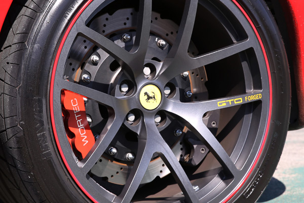 車主經過大鵬灣超跑獨走賽後,也體驗了單片式鍛造鋁圈的魅力,故又向F.MATCH代理商購入一組相同的GTO forged,原因是裝R888熱溶胎的槍灰色那組留做下賽道時專用,而路上想再一組不同塗裝的版本,除了要亮眼吸睛外,更需要那種輕量化的加速效果。由於F.MATCH可接受客製化塗裝,故與車主卻認塗裝模式之後,以槍灰、紅滾邊與黃色GTO字樣定案,搭配NITTO INVO. 前235/35R19後305/30R19頂級街道用胎,使得這輛F360 Modena在街道上一樣有著強烈的賽車氣息外,並有著無懼風雨的輕盈大腳,再次吸引街道上人們的專注目光。
