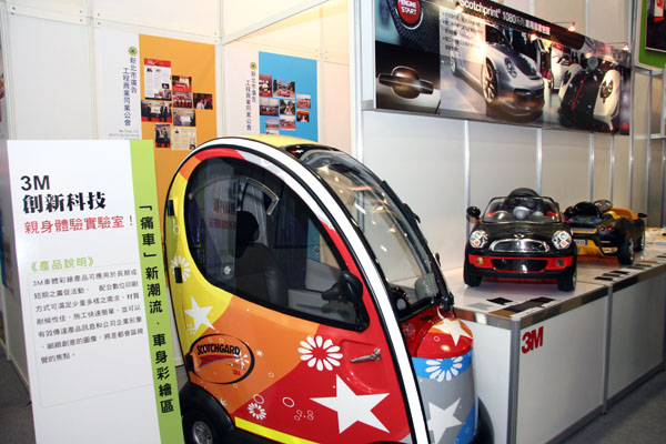 而滿足業者與車友的需求,3M推出車體彩繪專用膠膜,讓車迷們可以替自己的愛車隨時裝飾最有個人風格的彩繪。現場3M特別準備「痛車-我最拉風」展示,讓酷炫的痛車風采帶給大家最震撼的視覺體驗。3M IJ180Cv3超薄膠膜以及1080系列軟質車體裝飾專用膠膜可完全服貼3D曲面基材表面,專利的氣溝背膠設計能乾貼施工無氣泡,不僅提升產品質感,更能輕鬆創造專屬個人特色的車體外觀,而且1080系列軟質車體裝飾專用膠膜,每張最大寬度達1.5m,較一般車用膠膜寬,更足以包覆車輛大部分鈑件,讓施工後品質更為優易,同時,還可搭配反光膠膜彩繪,兼顧風格與安全的全新設計是此項產品的最佳價值,符合RoHS環保規範,拉風又環保的產品一定是現在最潮的最佳典範。