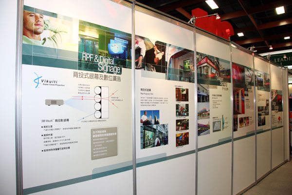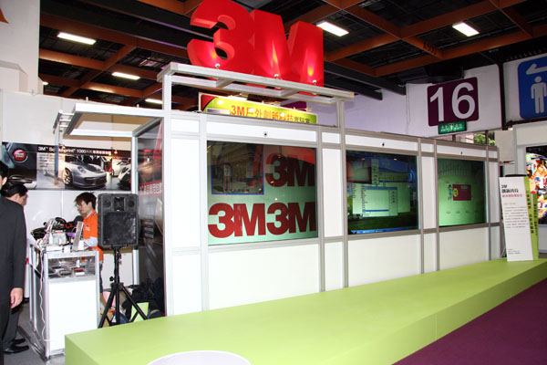 3M於2011臺灣國際廣告暨LED應用展中的展示攤位,設有多種產品之展示與體驗區域。