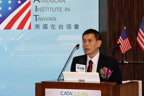 皇榮貿易股份有限公司總經理辜偉哲於發表會中分享在美國在台協會牽線下順利於美國剋碳靈公司的緣由。