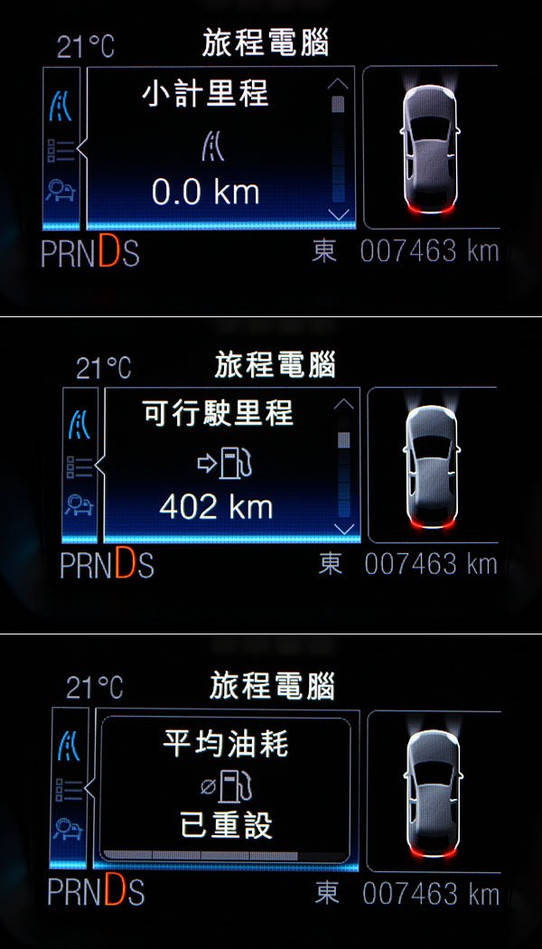 出發前將旅程電腦歸零,以測此行油耗表現。