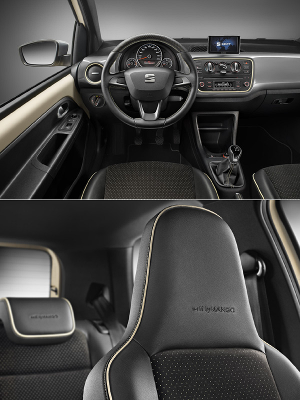 SEAT Mii by MANGO將於今年夏天推出,而這款特仕車可選擇三門、或五門的車體型式,並以「Style」配備等級車型為基礎;而Style等級的標準配備即擁有整合ABS與EBD的ESP電子動態穩定系統、可調式方向機柱、可傾倒後排座椅、六具SRS安全氣囊、前乘客座氣囊解除裝置、ISO-FIX兒童安全座椅固定裝置與繫繩、空調系統、含Aux-in外接介面的CD / MP3音響系統、上坡輔助系統、遙控中控鎖、中控台上的12V電源插座、與前門電動窗等等。