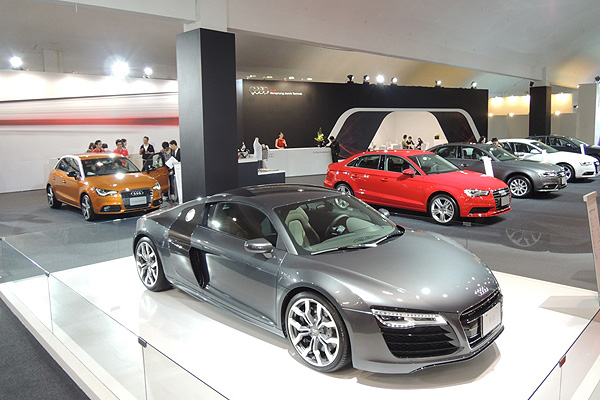 2014台南國際新車大展2月7日(週五)在台南市仁德區的南紡世貿展覽中心隆重開展,台灣奧迪汽車延續去年的高規格展場設施規劃,今年再次以最高標準打造充滿時尚科技氛圍的專屬展場,充分突顯Audi汽車身為頂級豪華房車品牌的領導氣勢!為了讓南台灣廣大的四環品牌車迷們,能夠完整欣賞到Audi最新世代的車款,台灣奧迪汽車在本屆台南國際新車大展上將會陳列Audi品牌旗下的九款主力新車,堅強的參展陣容將由新R8 Coupe終極性能超跑旗艦昂首領軍,包括S8頂級性能旗艦房車也會連袂登場,加上甫全新發表的熱銷車款─A3 Sedan豪華中小型房車、超人氣五門迷你都會車A1 Sportback、中型豪華房車主力A4 Sedan、豪華運動跑旅A5 Sportback、Audi Q5豪華休旅車、以及豪華休旅車旗艦Audi Q7等四環品牌旗下各級距主力車款,壯盛的參展陣容將充分展現出Audi汽車前衛科技再進化的不凡氣勢。