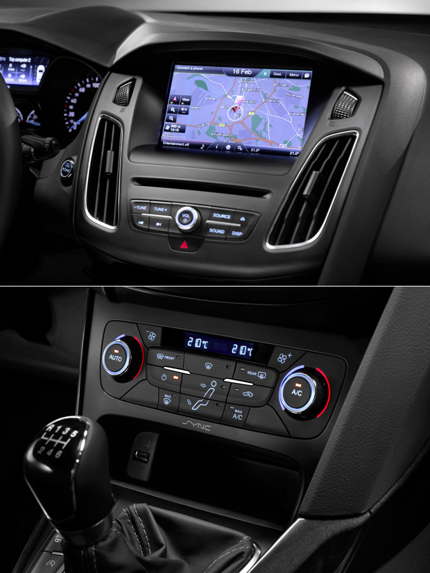 Ford SYNC 2多媒體連結系統,在全新Focus上搭配了一具8吋、高解析度的彩色觸控螢幕,而藉由聲控方式,駕駛人即可逕自控制音響、空調、或連結智慧型手機的各項機能,此外,Ford也修改了衛星導航系統,切割式螢幕包括3D影像、詳細的道路狀況、路名、以及特殊地點資訊等皆一目瞭然,且系統還內建有米其林指南(Michelin Guide)等資訊。