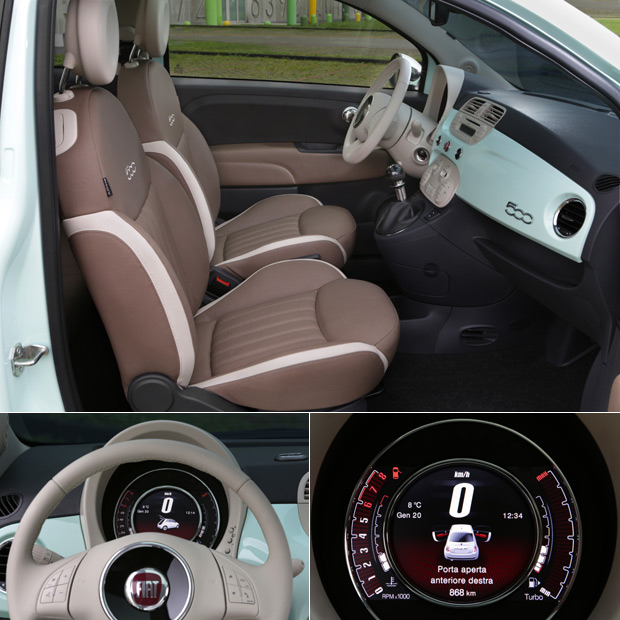 Fiat 500 Cult的座椅均為全皮革材質,而儀表更採用同級唯一的7吋TFT液晶顯示螢幕。