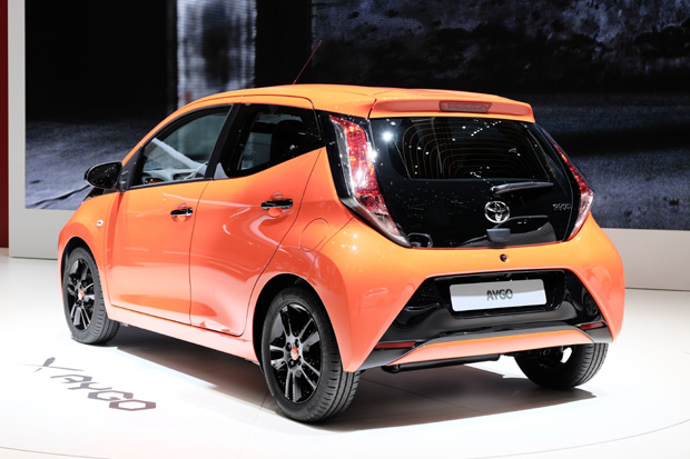 Toyota Aygo的車尾設計也與孿生車108、C1大異其趣,除了同樣的玻璃材質尾門外,Aygo的車尾線條以直線為主、並勾勒出與車頭相似的X樣貌。