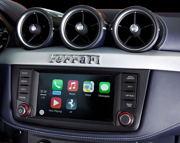 與California T一同亮相日內瓦的還有Ferrari首款四驅四座V12 GT跑車FF。即日起,準車主們可訂購搭載了蘋果CarPlay系統的全新Ferrari FF,讓車主在車內更智慧、更安全舒適地使用iPhone手機。CarPlay為iPhone使用者提供清晰直覺的使用方式,可通過語音控制或觸控接打電話、使用地圖、聆聽音樂及收發簡訊。使用者可使用車內控制介面輕鬆操控CarPlay或使用方向盤上的語音控制按鈕啟動Siri,完全不會分散駕駛注意力。