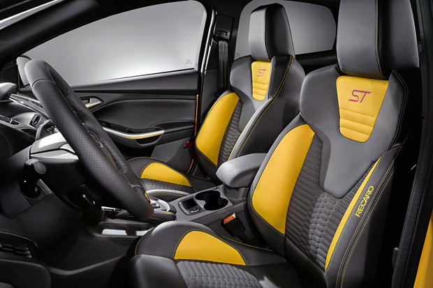 造型設計上,Focus ST內外均體現Kinetic Design動能設計精隨。超大蜂巢式氣壩、獨有的Y字型18吋鋁圈輪框內搭火紅剎車卡鉗、中置幾何造型的雙排氣管和紅色ST飾徽掠奪眾人目光。這些細節地勾勒,明顯點出Focus ST特有的侵略性,同時傳達高質感運動品味。而內裝的鋪成上,處處可見ST式樣設計與ST專屬熱血銘標,前排位置更由RECARO量身打造了ST賽車座椅,不但增添戰鬥氣息,絕佳包覆性更能讓性能車玩家足以安心享受馳騁快感。