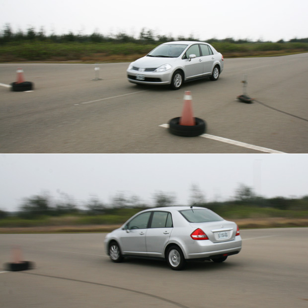 動態噪音測試方面,ARTC測試人員會將車輛控制在直線定速50km/h,當車輛進入感知器的範圍內時開始收音,進入三角錐正方20公尺的範圍內全油門、但不能到kick-down退檔的油門深度,到另一端後再鬆開油門脫離。