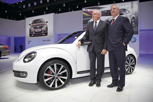 身兼VW董事會成員與研發長的Dr. Ulrich Hackenberg與VW總裁Prof. Dr. Martin Winterkorn一同為新世代New Beetle站台。