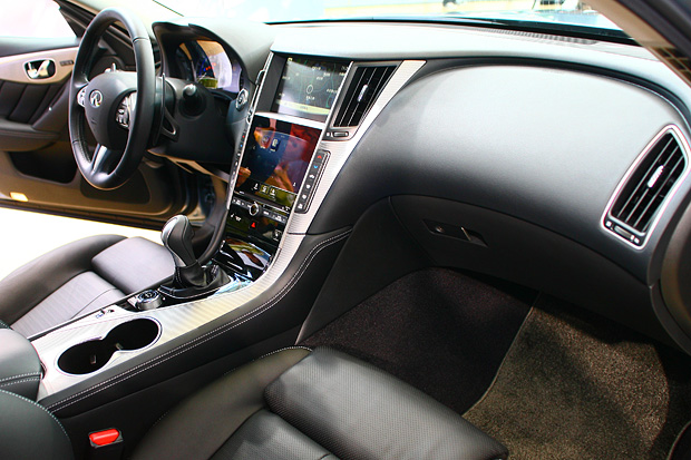 走進車內,Infiniti Q50的Double Wave艦橋式座艙,以正副駕駛座前方兩道拱起的弧形座艙,將Infiniti Q50的控制系統整合其中,不僅創造出更充裕的前座空間與視野,同實營造更舒適的豪華感受。至於中控台中央的觸控式雙螢幕多媒體控制面板,則整合了Q50一切的視聽裝置,搭配不對稱式的駕駛座艙設計,讓駕駛者從容掌控一切行車資訊。