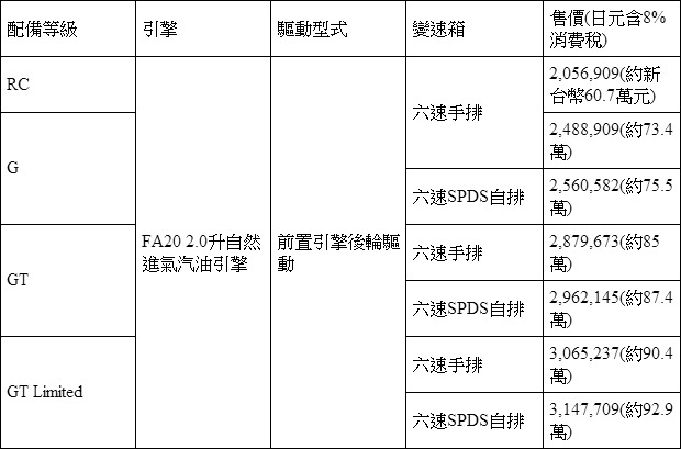 外觀車色部份,Toyota 86追加水晶白珍珠色(選配)、與冰燦銀金屬色等兩款烤漆色,使得全車系共有七款車色的選項。