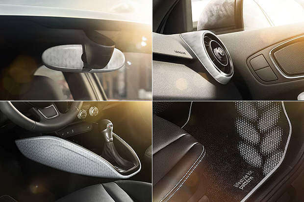 首先是外觀部份,包括動感車拱、車外後視鏡,以及後廂尾門等三部份,同步採用3D針織圖騰,不僅視覺上的魅力指數大幅攀升,也為整體質感加分不少;至於車室內裝的精緻升級程度亦同樣精彩,舉凡Air Vent 冷氣孔外框、車門扶手、車內後視鏡、中央鞍座,同樣施以3D針織圖騰精心點綴,就連原廠高級腳踏墊組也以相同的圖騰樣式拓印處理,配件總價值高達8萬2仟元整,絕對讓講究品味的型男仕女們愛不釋手。