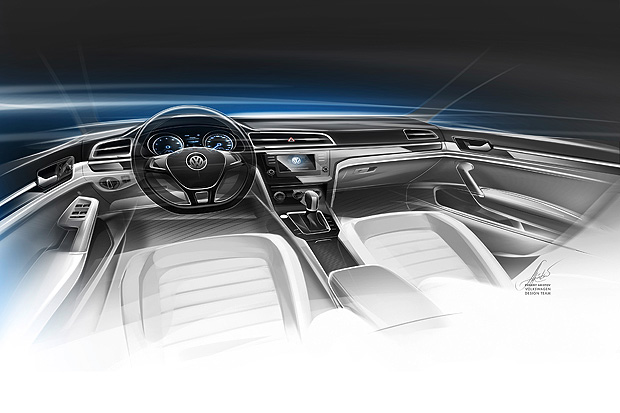 內裝則向現行的第7代Golf看齊,包括方向盤造型與中控台的設計,都能看出與現行Golf車系相同的元素,尤其是中控台多媒體控制系統、空調系統控制介面一直到排擋座設計等,都與現行的Golf如出一轍。能夠看出這款中型Coupe將會是基於MQB平台所打造而成,一般猜測可能會是Jetta CC的雛形,或者先行預覽新一代Jetta的設計輪廓。