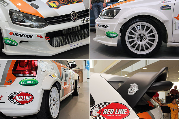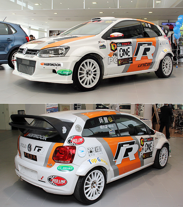 除了兩款Polo性能市售車外,目前臺灣唯一的Polo Rally Car也現身會場,這輛在甫結束的TRCC臺灣拉力房車錦標賽臺東大武站出賽的Polo廠車,由國內知名的女賽車手沈慧蘭擔任駕駛。經過國外賽車團隊的精心改裝,不僅加寬前後輪距與輪拱且安裝大型尾翼,更將車室內裝進行徹底的輕量化,並且植入符合FIA規範的防滾籠與防爆油箱,以及給予正駕駛與領航員乘坐的賽車座椅,以維護車手的人身安全。