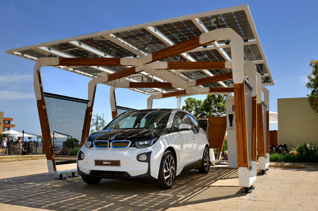 BMW專為i系列車款所設計的太陽能充電車棚,已實際在美國加州Malibu展開運作。