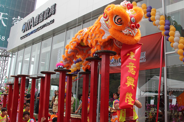 現場有著專業級的舞龍舞獅表演,祝德國歐馬生意興隆。