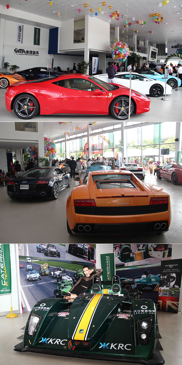 旗艦總部現場展示千萬頂級超跑,與Caterham SP/300R賽車。