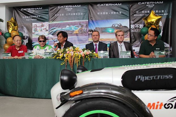 開幕活動之後,緊接著為「亞洲統一規格賽記者會」,記者會現場宣佈明年將配合德國歐馬舉辦Caterham R300統一規格賽。(由左至右) 中華賽車會(CTMSA) 楊光榮會長、CRT Principle- Alan Parkes、德國歐馬羅達仁執行長、Caterham Group CEO-Graham MacDonald、Caterham Cars -Oliver Davis與OTGP賽事總監-刑雨龍先生。