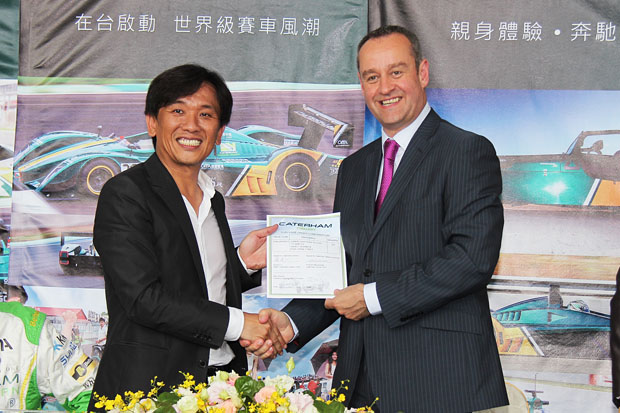 現場由德國歐馬羅達仁執行長、Caterham Group CEO-Graham MacDonald共同簽暑22輛Caterham R300的購買合約。