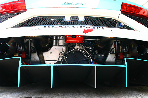 當然,除了動力與傳動等部分外,關於一輛統一規格工廠賽車,僅管外觀看起來或許大同小異,與一般版Gallardo相較頂多加上更張牙舞爪的空力套件,但真正的差別其實來自重量的精簡,以2008年的標準版Gallardo LP560-4來說,其乾燥重量為1410公斤,而Gallardo LP570 Super Trofeo廠車則在捨棄大量奢華配備,並換上諸如碳纖維等輕量化複合材質部件後,再加上符合FIA賽事規範的安全設備(如防滾籠、滅火器、斷電裝置、賽車椅等)後,最終重量落在1300公斤,比起原本市售版本減輕足有110公斤,不僅讓重量馬力比來到2.28kg/hp,同時也令配重更加完美。至於煞車系統部分則以前六後四活塞卡鉗搭配前375 x 35mm與後355 x 32mm通風碟盤,一同肩負起賽道內制動的重責大任。