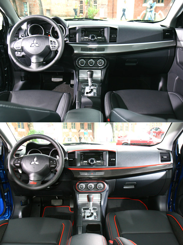 Lancer Fortis / iO全車系均以黑色內裝為主,Lancer iO車型則以大量的紅色細節點綴來強調車型的動感定位。