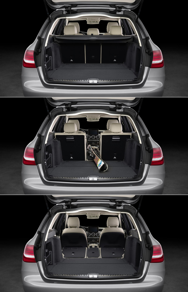 車尾廂空間也是五門旅行車的另一項重點,W 205 C-Class Estate在後排座椅正常使用的情況下,即具備490公升、較W 204 C-Class Estate多出5公升的置物容積表現,若將後排座椅打平,那麼則較W 204多出10公升、達到最多1,510公升的車尾廂容積表現;另外,全新C-Class Estate的後排座椅也從60 : 40的六四分離改為40 : 20 : 40的設計,而後座更具備電動收摺傾倒的功能。