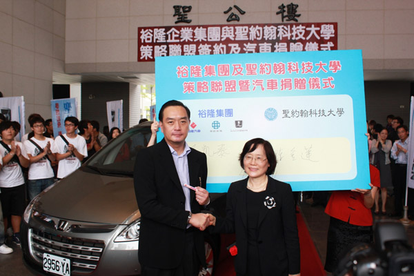 裕隆集團執行長嚴凱泰代表集團捐贈Luxgen車輛予聖約翰科技大學。