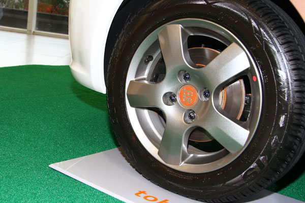 五幅式輪圈搭配165/65R14規格輪胎。