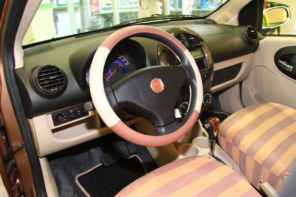 M'car浣熊版獨有的森林色系真皮方向盤。