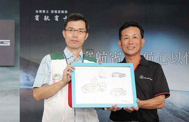 家扶基金會大同育幼院代表特別於會中將小朋友繪製的Mercedes-Benz車款畫作,捐贈給賓航賓士,作為感謝之意。