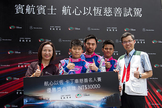 繼四月份於大鵬灣舉辦「AMG 賽道體驗營」深獲車主好評後,賓航賓士今日(6/27)再創話題,秉持「你試乘、我捐款」的善心出發,與公益單位-家扶基金會大同育幼院合作舉辦別具意義的「航心以恆慈善試駕」,不僅邀請消費者體驗賓士豪華小車(NGCC)的駕馭快感,更舉行卡丁車慈善賽事,活動邀請知名導演魏德聖站台,更邀約熱血話題電影《KANO》劇組團隊:范逸臣、曹佑寧;以及知名導演陳奕先、少年賽車手蔡承揚及林岑翰;和《AAI》專業賽車隊陳俊杉、陳漢承等人進行慈善名人賽,期望以偶像藝人與知名車手的高人氣,為弱勢族群發聲,喚醒社會對於慈善義舉的重視。