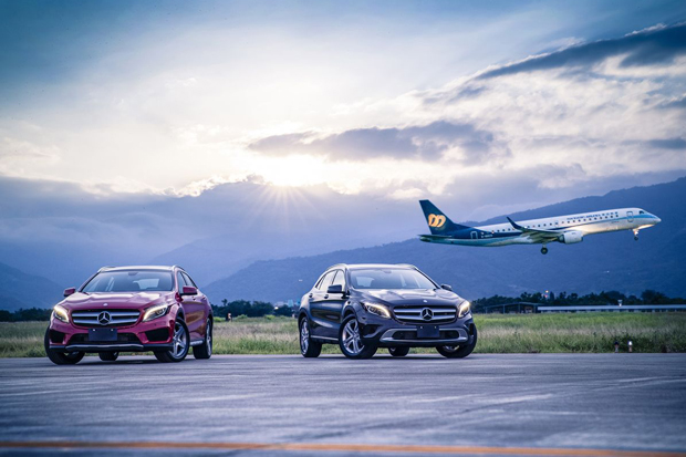 6月24日正式在台發表的The New GLA,以靜不下來的休旅個性,成為熱愛生活的最佳表徵,也因為The New GLA的問世,讓以MFA底盤打造的Mercedes-Benz NGCC(New Generation Compact Car)新世代小車,有著更完整的家族陣容,更讓Mercedes-Benz NGCC新世代小車家族成為了豪華車壇中最兼容並蓄的年輕新貴。看中此前衛、熱血、不羈、好動的專屬特色,台灣賓士更要將地表上最靈動的代表,結合空中的飛躍因子,由The New GLA與華信航空採用尖端航太科技的E190噴射客機,創台灣車壇空前之紀錄,利用台東機場的寬廣領域及台東美麗山景,展現不受拘束的休旅意念。