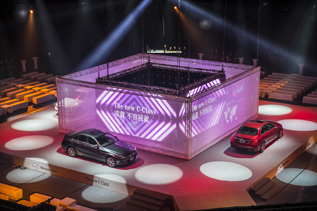 The new C-Class提供C 180、C 200與C 250三種車型動力設定,在車型外搭配EXCLUSIVE、AVANTGARDE與AMG Line額外三種外觀與內裝套件選擇,比照頂級旗艦的客製化思維,呈現The new C-Class各種獨特魅力與多重個性。為演繹全新C-Class多變面貌,由8位凱渥名模精心展演,以四種不同風格:雅仕風範、品味休閒、名流時尚、風格運動等主題造型詮釋 The new C-Class各種獨特魅力,並引領台灣賓士總裁邁爾肯及副總裁司達恆出場,為活動帶來最高潮。堪稱台灣車壇史上最華麗的類3D Car Show,就在時尚名模們以及多達9台的The new C-Class磅礡陣容,完美演繹了 The new C-Class,並再次樹立難以企及的豪華車壇新標竿。