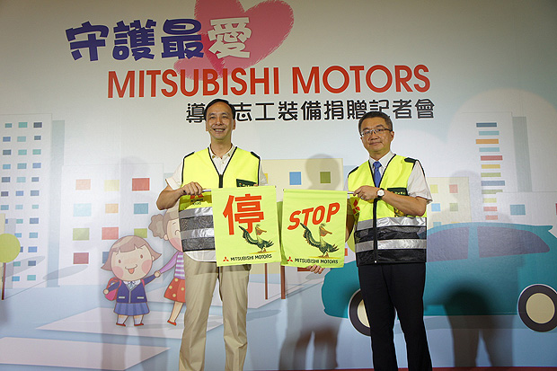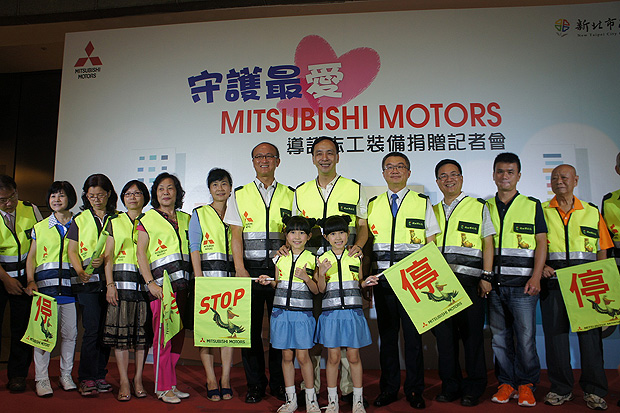 中華三菱長期關注親子議題,為了呼籲用路人更重視兒童行的安全,並提供站在第一線保護學童安全的導護志工、在管制交通時有更高的安全性,特別以實際行動捐贈一萬份、價值800萬的導護裝備,提供孩子們上下學期間多一層防護,並於7/29 (二) 假新北市政府一樓大廳,舉辦「守護最愛 Mitsubishi Motors 導護志工裝備捐贈」記者會,新北市長朱立倫、新北北市國民中小學交通導護大隊及多位資深導護志工均出席表示支持,會中並邀請多才多藝的雙胞胎姊妹樂樂、媃媃還以可愛的打氣舞表達對導護志工爸爸媽媽們熱心付出的感謝。
