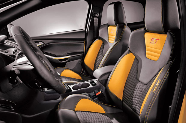Focus ST內外均完整體現Kinetic Design動能設計精隨。超大蜂巢式氣壩、獨有的Y字型18吋鋁圈輪框內搭火紅剎車卡鉗、中置幾何造型的雙排氣管和紅色ST飾徽,無不掠奪眾人目光。中控面板頂部裝有ST運動三環錶,提供渦輪壓力、機油壓力和機油溫度資訊,讓駕駛人可精準掌握車體性能變化,創造駕馭熱血度。而內裝的鋪陳亦處處可見ST式樣設計與ST專屬熱血銘標。由Recaro量身打造ST賽車座椅,不但增添戰鬥氣息,絕佳包覆性讓駕駛能夠安心享受征服速度的馳騁快感。這些細節勾勒,明顯刻畫出Focus ST特有的侵略本質,更同時彰顯車主的高質感運動品味。
