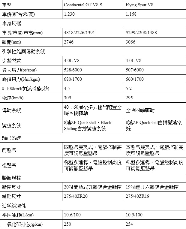 BMW 760 Li與Audi A8 L W12車價分別為新台幣993萬與934萬元,可說是與Flying Spur V8車型在相同的千萬戰區中。