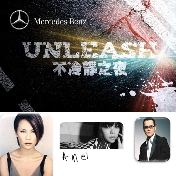 在『Mercedes-Benz UNLEASH不冷靜之夜』中!將讓每位與會的觀眾貼身感受「為奔馳而生」的視覺震撼,激發腎上腺素、讓您「大動凡心」、勾動您「何止不安分」的細胞靈魂!發表會陣容空前,邀集楊乃文、羅大佑及張惠妹等流行音樂界天王天后獻聲演出,絕對引領潮流、勢必再掀台灣車壇風暴。而且一口氣發表於小巨蛋發表C-Class、CLS、SLK三款新車,也可說是創了台灣車壇之最。