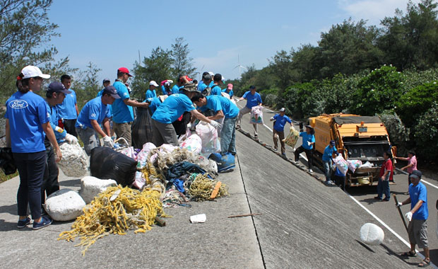 福特六和員工於9/14日至桃園關心海濱進行淨灘活動,在員工與員工眷屬的熱情參與下,同心協力清潔海灘上共1.5噸的垃圾及廢棄物,還給觀新海濱乾淨的面貌。