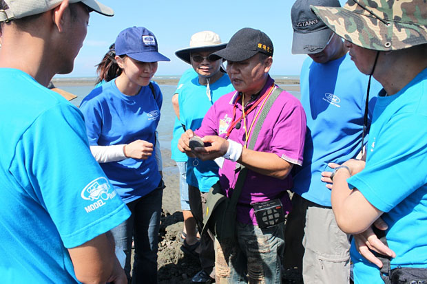 由荒野保護協會輔導的觀新海灘社區解說員,為參與淨灘的志工夥伴進行藻礁生態導覽,讓Ford員工與眷屬在淨灘同時也建立海洋生態知識,齊心推廣保育,守護台灣美麗的海岸線。