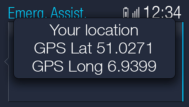 當緊急援助通訊系統偵測到車輛SRS輔助氣囊被觸發、燃油供給系統切斷時,系統便隨即利用車主的手機撥打求救電話至110報案專線,並連續撥放兩次系統預錄語音訊息,清楚提供車輛所在位置之GPS座標,請求緊急提供救助。