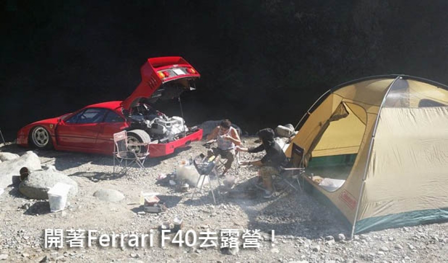 日前,日本一對玩家於一個超跑粉絲團【Carguy】中,發布了一系列出遊露營的照片,但與一般人到溪邊露營多會選擇駕駛休旅車不同的是,在該組照片中最引人注目的是他們駕駛的車款為Ferreri一代經典超跑F40。照片中他們將所有露營所需用品固定於車頂上,直接將F40開到溪邊露營,甚至在F40的排氣管上放錫箔紙煎蛋,趣味十足。