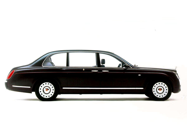 以Arnage 平台為基礎打造的State Limousine車長達6.3m,並依循著過去王室用車的傳統,將車高增加了25cm,全車具有防彈、防毒氣等基本防護功能,同時採用全景式玻璃車頂與大面積後檔玻璃窗設計,讓王室人員更具有親民感。車色部分則是選擇了王室專屬的酒紅色,並且在車頂上設有立牌以示身分。動力系統則搭載一具6.75升V8雙渦輪增壓引擎,可輸出400bhp最大馬力與85.2kgm最大扭力,即使車重驚人,但極速能可達210km/h。
