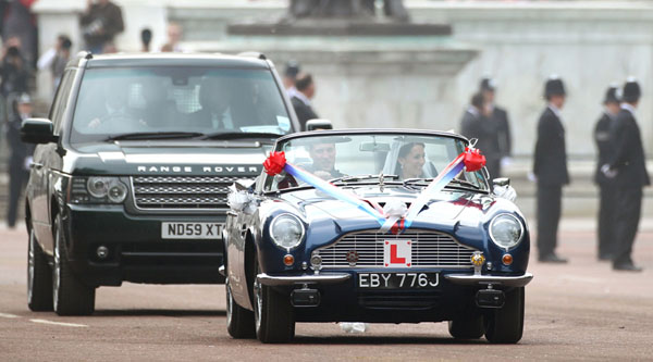 在婚禮過後,威廉王子與凱特王妃展開遊街活動,自白金漢宮出發後繞行周邊道路一周,接受民眾祝福,此時威廉王子則是駕著1969年的Aston Martin DB6 Mk2 Volante,讓Aston Martin除了Rolls-Royce與Bentley之外,另一個於婚禮中現身的英國頂級品牌。