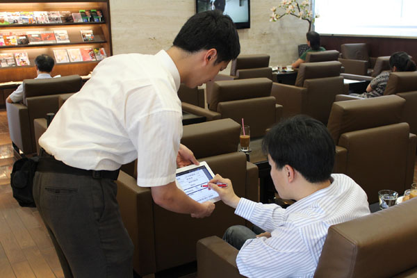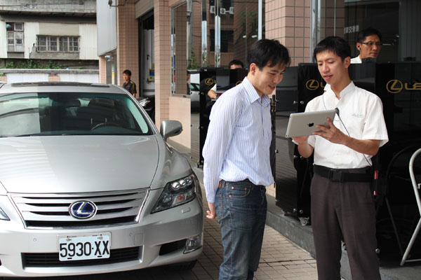 2. 無紙化的電子作業:當顧客回廠進行維修時,服務專員可立即把顧客的維修需求輸入iPad2,同時,顧客也可以直接在iPad2上簽名確認維修內容與價格,減少過去紙張列印的成本與顧客等待的時間。
