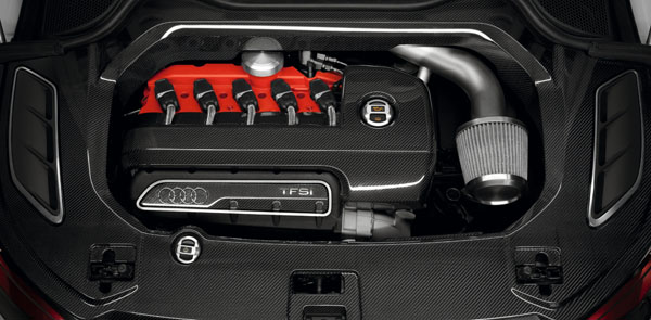 動力系統部分則是植入了與TT RS相同的2.5 L TFSI缸內直噴渦輪增壓直列五汽缸引擎,在經過重新調校後,最大馬力與可達503hp,最大扭力則可達660Nm〈67.34kgm〉/2500-5300rpm,比起Audi於2010年推出的quattro concept〈408hp/48.98kgm〉還要來得更驚人,可說是將該具引擎壓榨到最顛峰,其中渦輪增加系統、中央冷卻系統與排氣系統都是源自A4 DTM廠車,並且搭配六速手排與quattro四輪傳動統,驅動僅1390kg的車重,可讓這輛恐怖的暴力小車,在3.7秒的時間由靜止加速到100km/h,0-200km/h起步加速也只需10.9秒,以四檔自80km/h再加速到120km/h也只要2.4秒,此等加速性能甚至比Audi當家超跑R8 5.2 FSI還要更為強悍,在道路上將可成為不折不扣的超跑殺手,不過極速部分則以電子限速於250km/h。